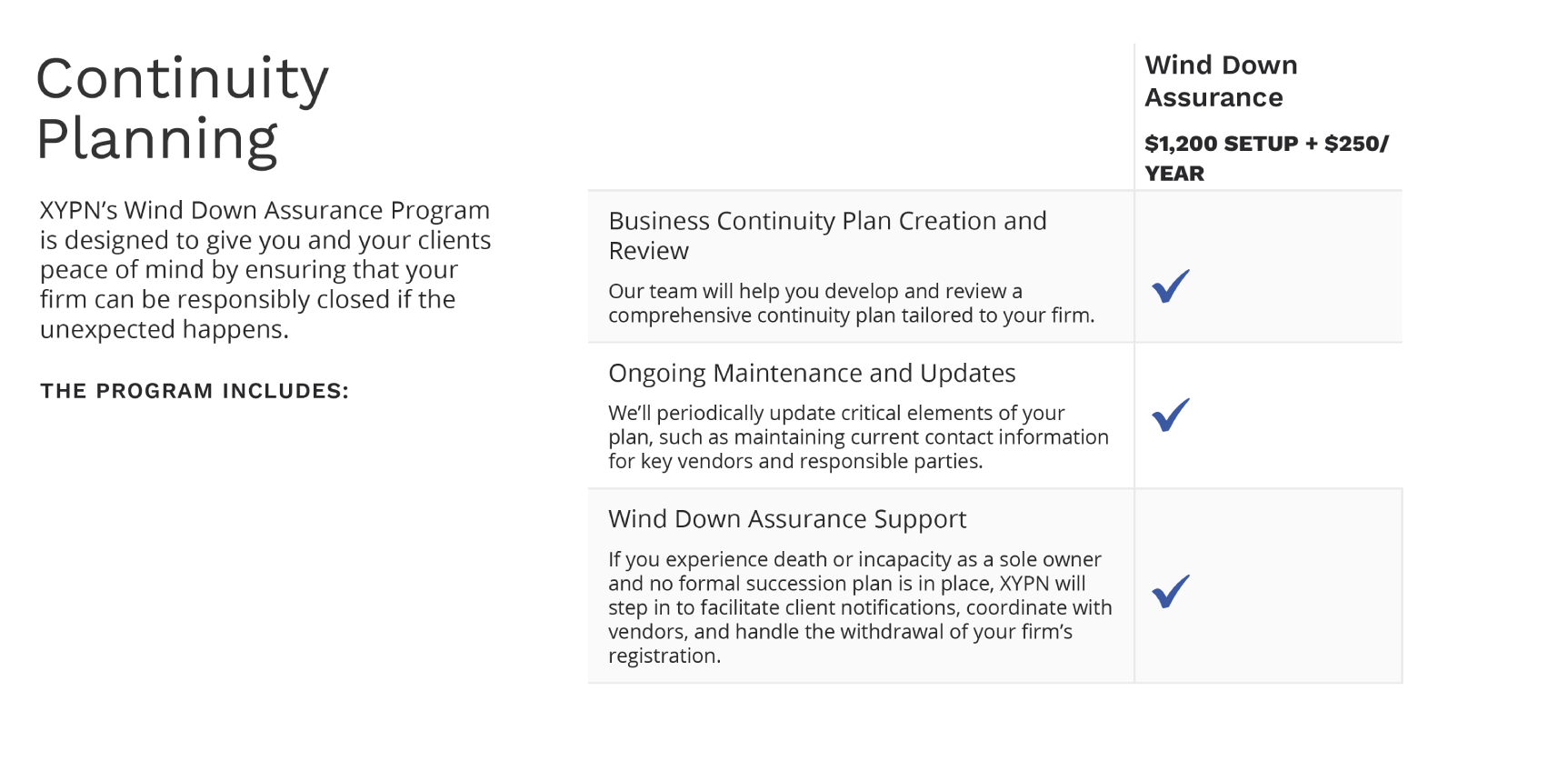 Whether you're expanding your firm, need to revise your compliance and disclosure documents, or just need some expert advice, the XYPN Compliance Team is available to help you knock out those items so that you can get back to working with your clients and running your firm!